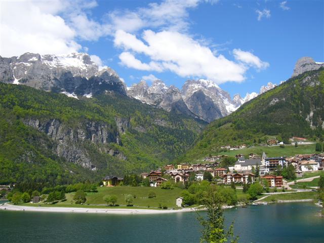 El pueblo de Molveno pese a ser turístico tiene un ambiente agradable. Hay un funivia que ofrece otra perspectiva del lago y rutas de trekking...